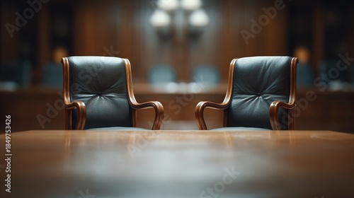 truce. An empty chair at the center of a negotiation table in a formal setting. pitch deck slides, case study pages, designed for corporate presentation decks and stakeholder reports.