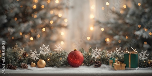 Studio setup featuring a red holiday ornament, seasonal decor for festive displays