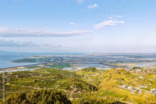 熊本の金峰山から空撮した有明海(島原湾)の干拓地