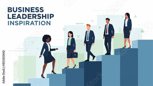 Business Leadership Inspiration Diverse Team Climbing Stairs Towards Success.