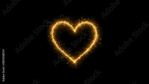 Sparkling Gold Heart on Black Background