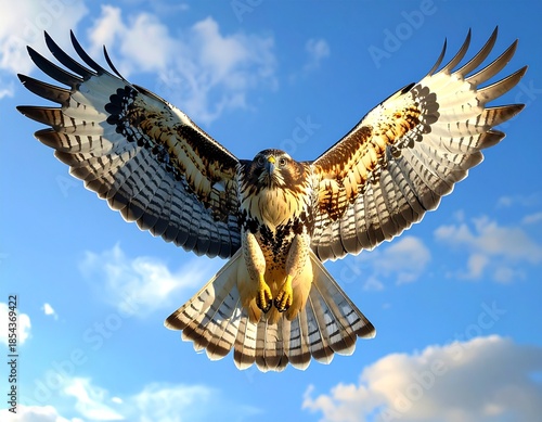 ・青空を舞う鷹の飛翔 ― 力強さと自由を象徴する野生動物 ・Soaring Hawk in the Blue Sky – Symbol of Strength and Freedom