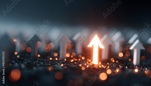 Unique success concept with a glowing arrow breaking limits while others remain blocked.