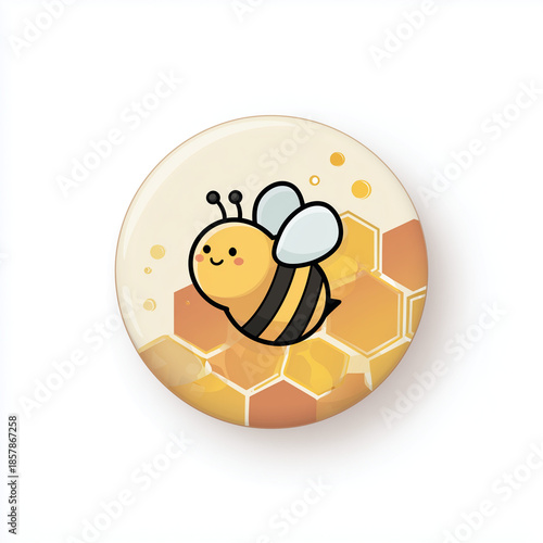 Ilustrowany przycisk z pszczołą na plastrze miodu