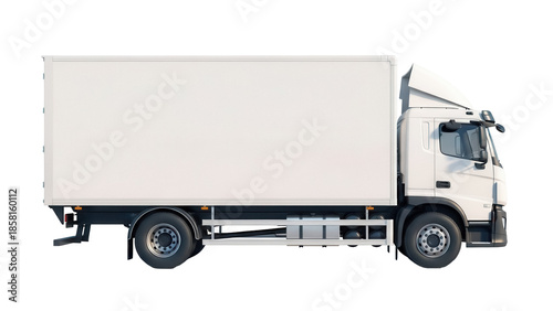 White delivery truck PNG isolated on transparent background, commercial vehicle for freight transport and logistics services, cargo transportation