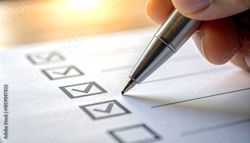 項目に印を付ける手元が意思決定と選択の瞬間を示す