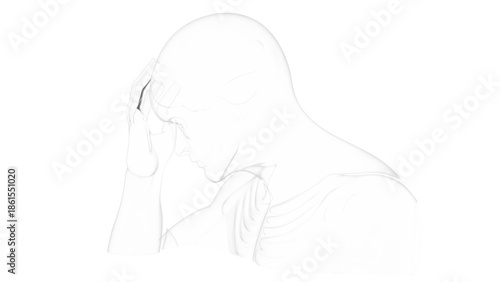 3d man holding head, symbolising headache and migraine, stress and anxiety, medical illustration