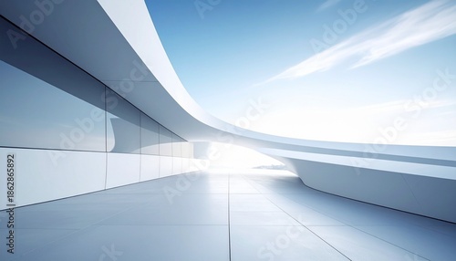 A futuristic white architectural interior with curved and angular surfaces, dramatic light and shadow, and a glossy floor—evoking surreal space, conceptual elegance, and the poetics of form.