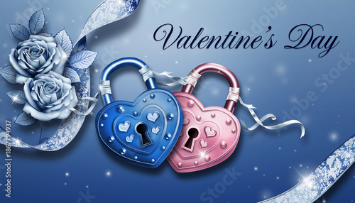 Różowa i niebieska kłódka w kształcie serca jako symbol miłości na całe życie