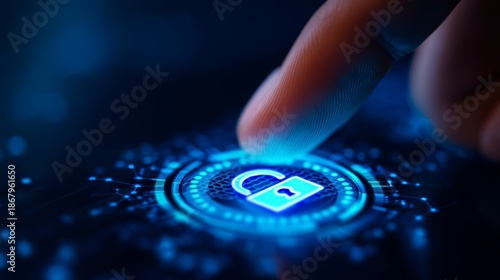 A Close Up of a Finger Touching a Digital Lock Icon on a Futuristic Interface, Symbolizing Data Protection and Cybersecurity in Modern Technology Environments
