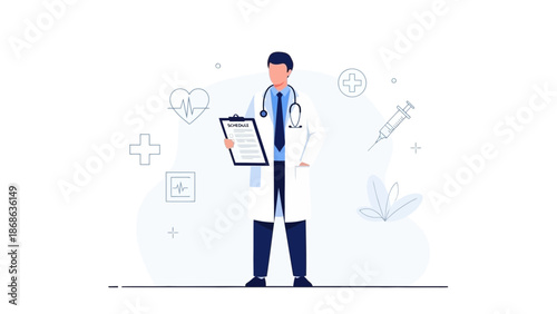 Doctor with Stethoscope and Clipboard, Medical Icons, Healthcare Illustration