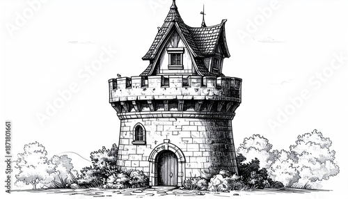 Enchanting Medieval Tower Illustration - A Journey into Fantasy Architecture.