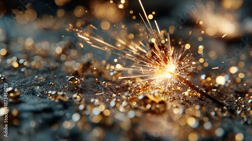 Sparkling new year celebration with lit sparkler and glittering lights for festive design