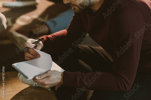 cropped shot of handsome young man holding blank notepad