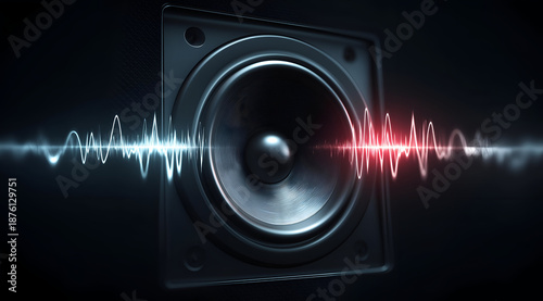A modern speaker with sound waves visually represented in vibrant colors. Ideal for audio technology, music production, and sound engineering concepts.