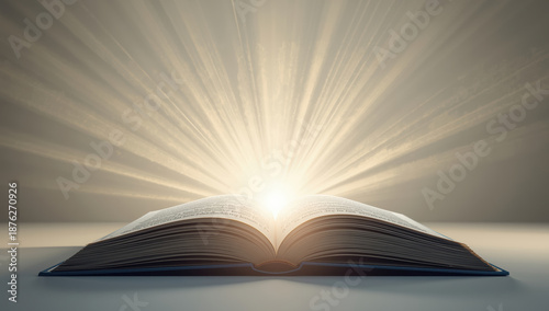 Open book with radiant light and inspiring glow suggesting knowledge and revelation