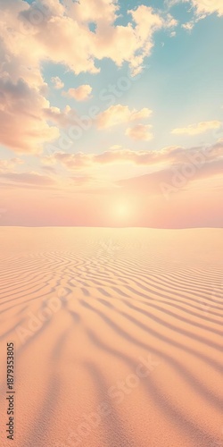 Sun-kissed sand ripples meet ethereal watercolor sky, creating a tranquil coastal iconographic landscape, pastel, icons