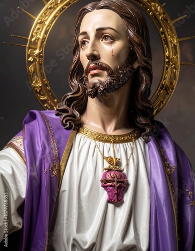 Escultura religiosa de Semana Santa con Jesucristo en actitud de recogimiento. Imagen solemne con iluminación dramática y detalles dorados, ideal para uso editorial y contenido religioso.