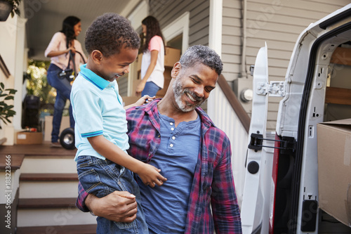 Children Helping Children With Boxes On Moving In Day