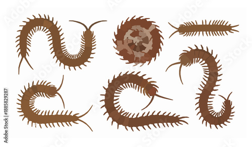 Centipede insect collection vector illustration realistic flat arthropods isolated on white