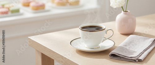 Tasse de café élégante sur table minimaliste aux tons pastel