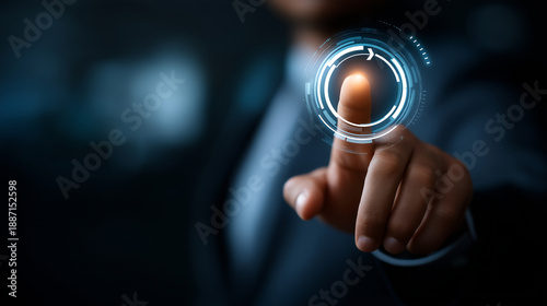 Faceless businessman pressing recovery button on virtual screen interface internet and networking concept digital restoration technology solution business continuity system