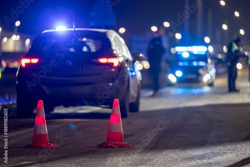 Oznaczenie wypadku drogowego na ulicy w nocy. Incydent