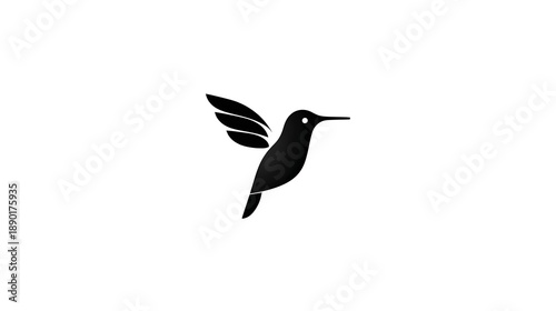 A clean black silhouette of a hummingbird in mid flight designed as a minimalist icon or logo presented starkly against a white background