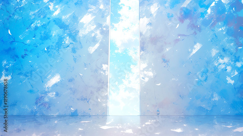 高い壁と壁の間から見える美しい青空のイラスト背景