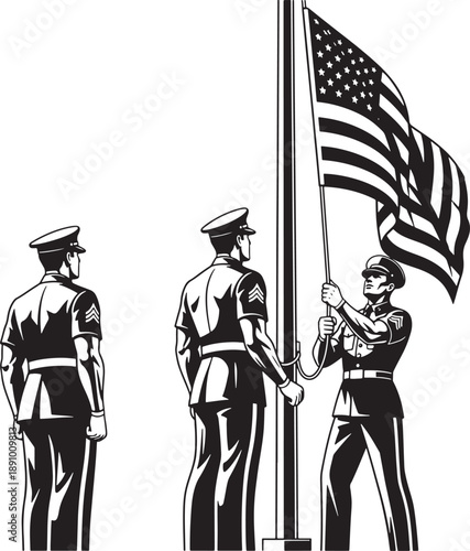 Military ceremony with american flag Vector