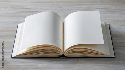 開いた白い文字のない本のページが捲られるイメージ 紙のテクスチャ:知識・教育・出版のコンセプト背景
