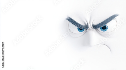 Angry cartoon face with furrowed brows and intense blue eyes, expressing frustration and annoyance in minimalist style