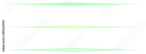 Abstract neon green light streaks isolated on transparent PNG background. Various green shades glowing lines.