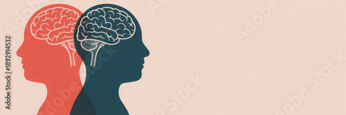 Metaphor bipolar disorder mind mental. Double face. Split personality. Concept mood disorder. Psychology. Dual personality concept. 2 Head silhouette.Mental health. Tangle and untangle