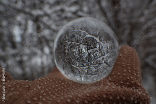 zimowe tło zamknięte w kryształowej kuli