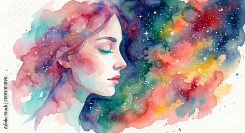 Profilo di donna mistica in stile acquerello astratto