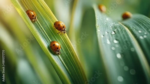 pest control with ladybugs and beneficial insects on blurred background