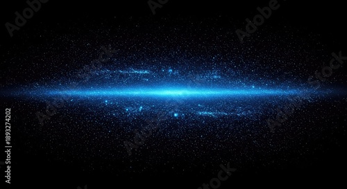 Abstract digital illustration showcasing a deep blue cosmic energy field with glowing particles moving rapidly across the black void background, energy, background, force