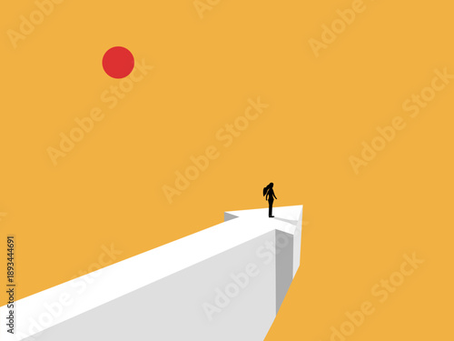businessman stood at the edge of the cliff, pointed to by the arrow