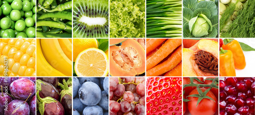 Çeşitli meyve ve sebzelerden oluşan kolaj