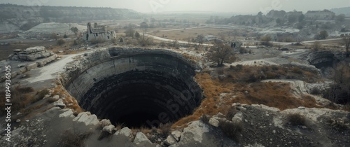 Black sinkhole develops continuously, measuring 15 ft across and 40-50 ft deep, originating from abandoned limestone mine