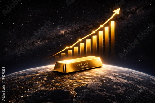 Global Gold Price Surge Depicted with Golden Bar and Rising Graph Over Earth