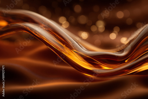 Silk glowing translucent warm gold liquid luxury amber wave bokeh. Deep rich texture evokes feeling of elegance and mystery through radiant light and soft curve in dark space