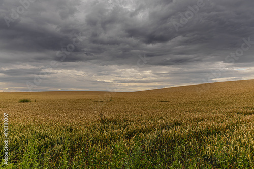 Jesienne pola zbożowe przed burzą