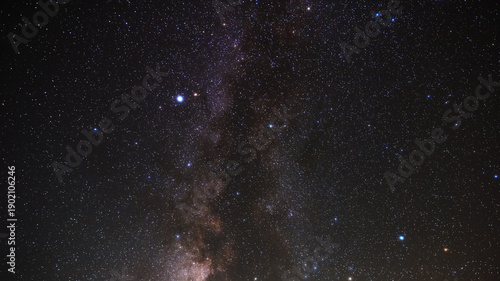 Milky way stars and constellations with a galaxy background photographed from a dark countryside location.