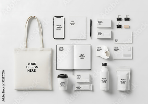 Business Branding Collateral Merchandise Mockup Set on White Background