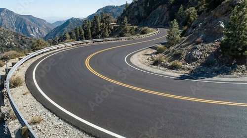 Mountain road hairpin turn with winding asphalt in rocky landscape