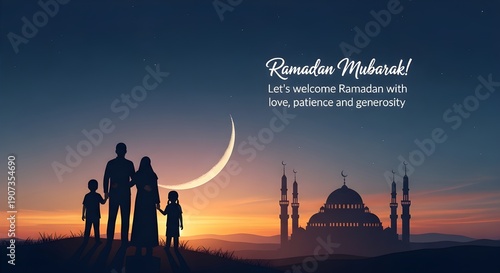 Vector illustration of a night silhouette featuring the Taj Mahal and mosque architecture against an Indian city skyline with a dome and temple landmark for a religion or Eid culture card design