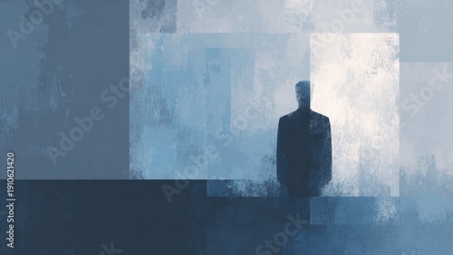 光と影のコントラストに立つ人物シルエット 不安の抽象表現