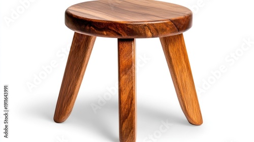 Wooden stool with a circular top and three legs.